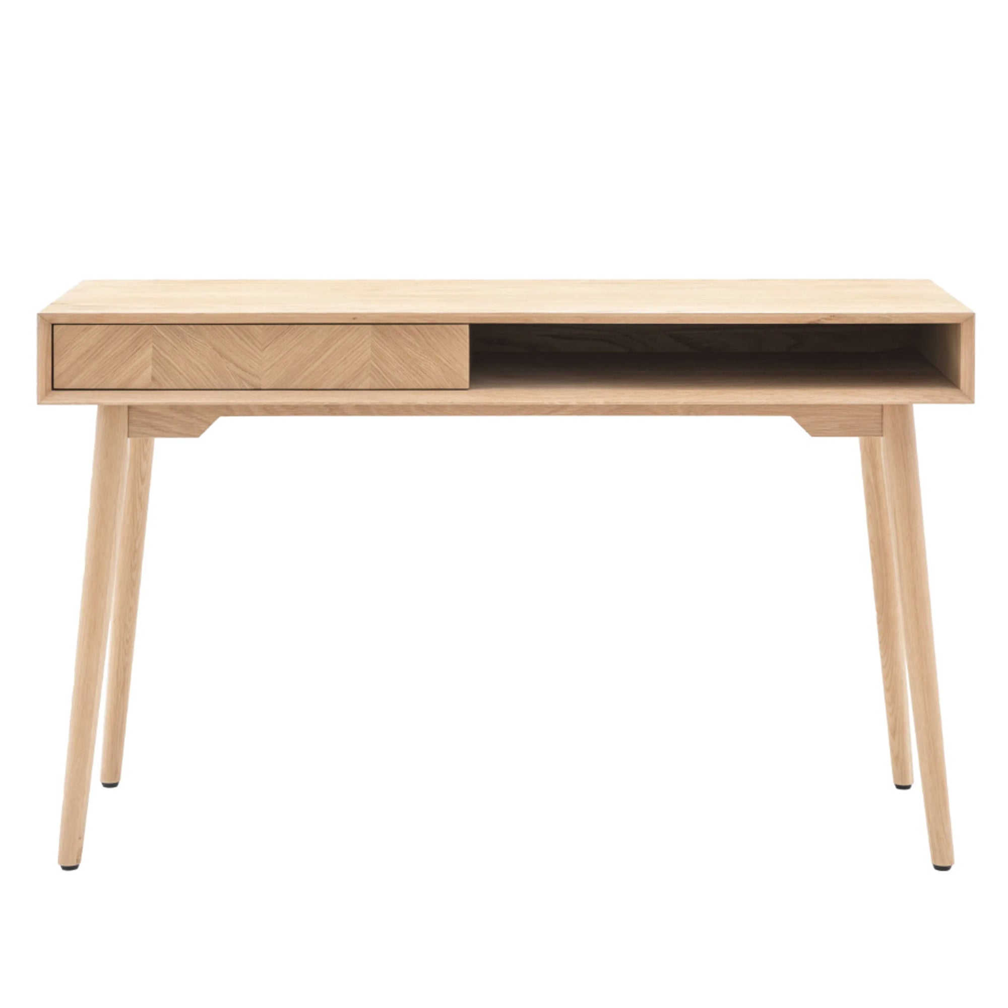 With its rustic look this 1 drawer desk will suit both a classic and contemporary interior. It is made using solid European Oak in a mellow matte grey finish. The wide single drawer offers practical storage space.