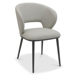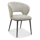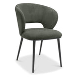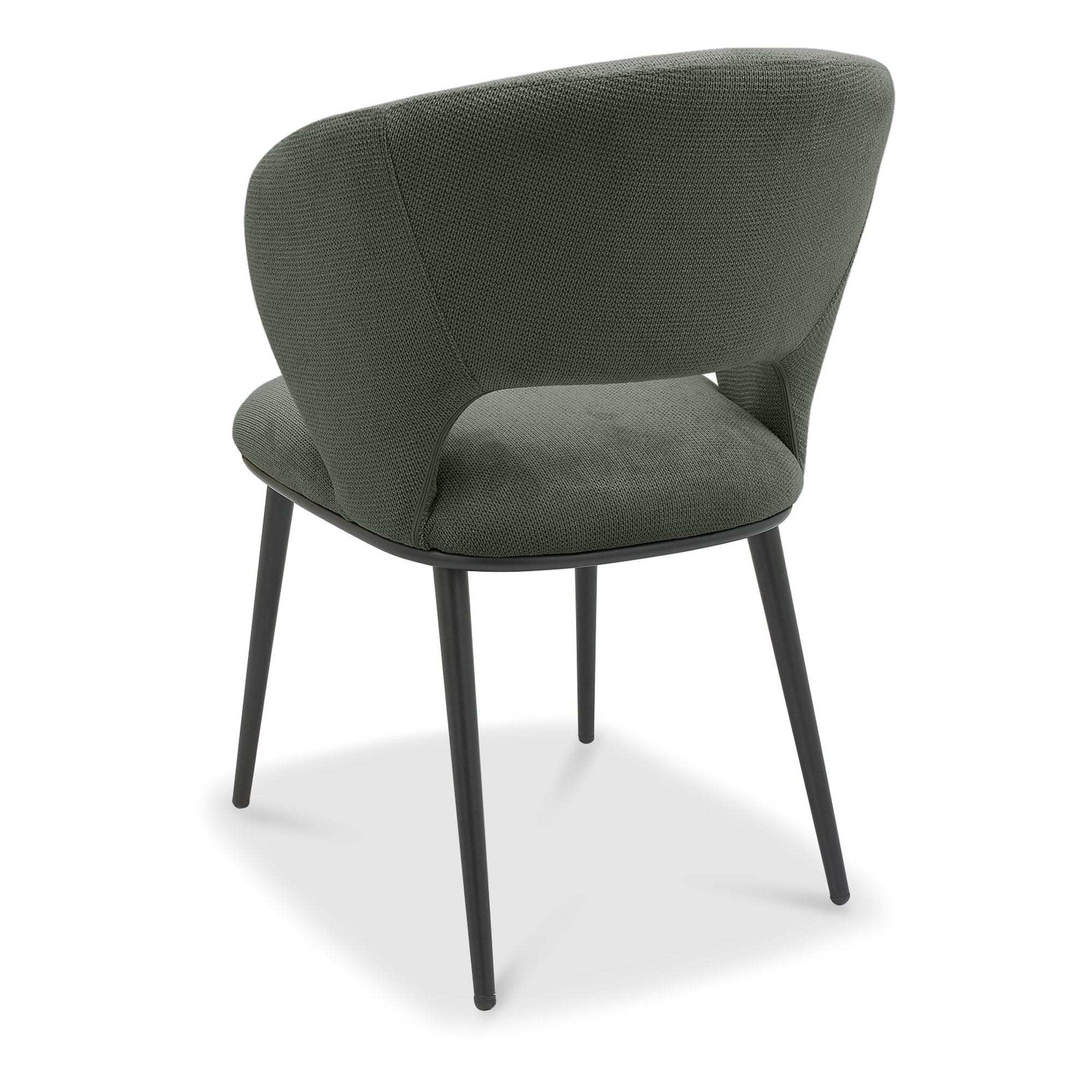 The Luca chair’s curved back is designed to cocoon around you, offering both comfort and elegance. Upholstered in a choice of fabrics, it provides a range of stylish options. Sleek black metal legs add a modern contrast, making it a design staple that complements many interior settings.