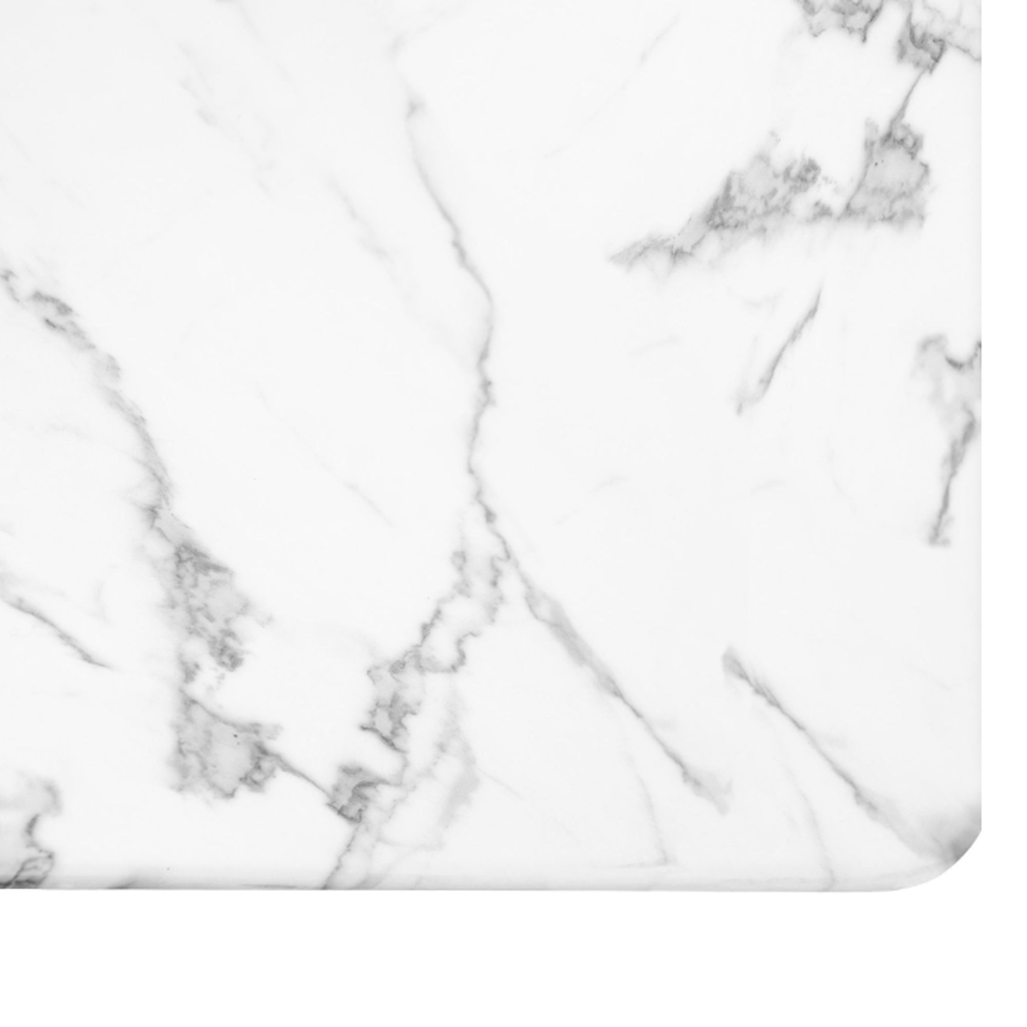 Stunningly modern and sophisticated, this table features a classic faux white marble glass top and distinctive angled black legs, creating a contemporary and stylish table you won't be able to take your eyes off. Perfect for bringing a modern touch to any dining space, the table seats 6.