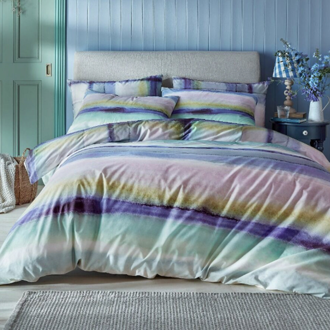 Reminiscent of the beautiful beaches on the Hebridean islands of Scotland, ‘Hebrides’ is a bold and beautiful watercolour stripe design full of colour. Turquoises and blues are evocative of the colours of the sky and sea, it’s our Bluebellgray take on a seascape. The same Scottish hues are used to create a watercolour tartan reverse - a special design that celebrates our own Scottish roots and the textile heritage of Scotland. This design is a larger scale, modern, watercolour interpretation of traditional tartan, blending heritage with our signature style to bring a fresh, artistic twist to an iconic pattern.