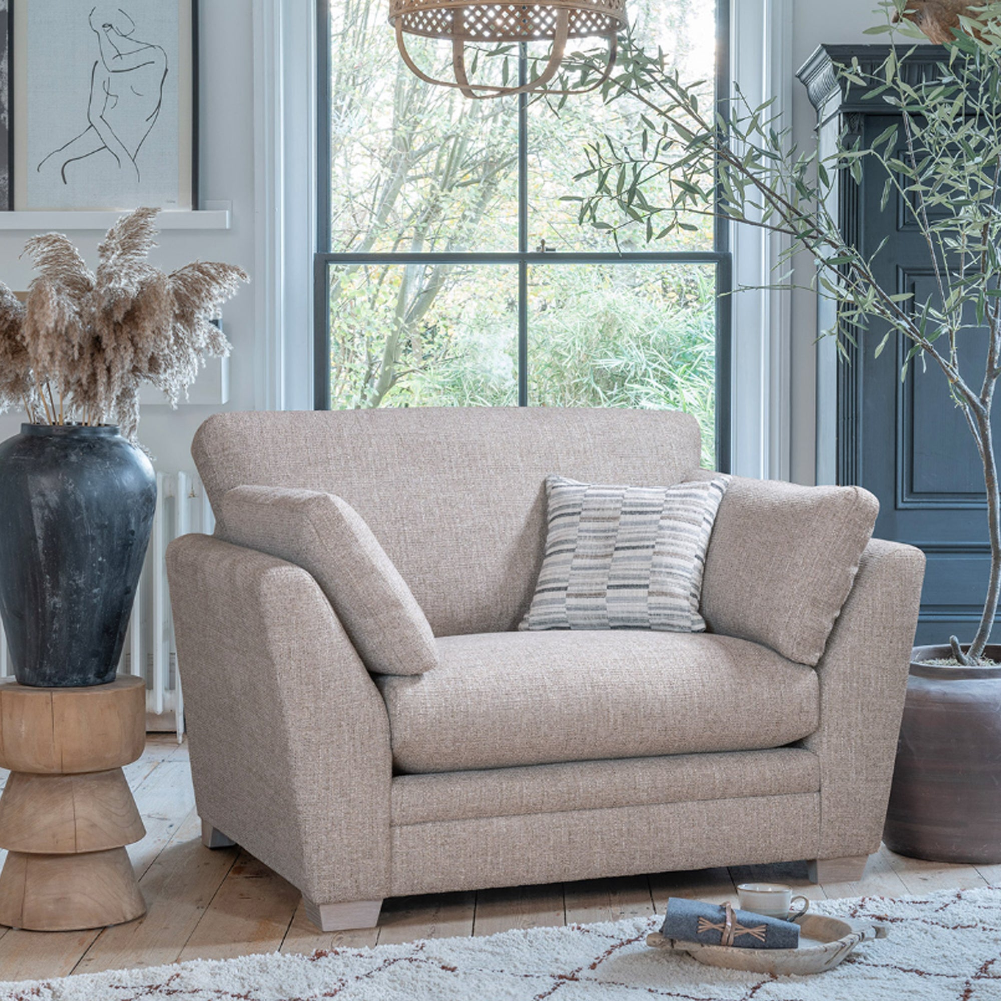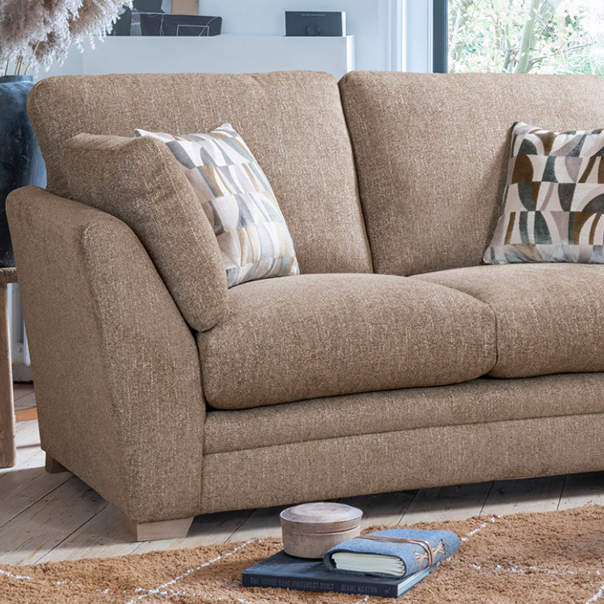 Designed for modern lounging, the Rochelle sofa features award-winning Softcure® cushions for the perfect blend of softness and support. Sleek, tapered arms and discreet show-wood feet in smokey oak or ebony create a stylish, relaxed look. Choose from standard back cushions with arm bolsters or casual pillow backs and explore a curated selection of trend-led fabrics, velvets, and faux fur scatter cushions. Available in multiple sofa sizes, snuggler, armchair, footstools, and the coordinating Annecy accent chair. Rochelle brings comfort, style, and effortless elegance to any living space.